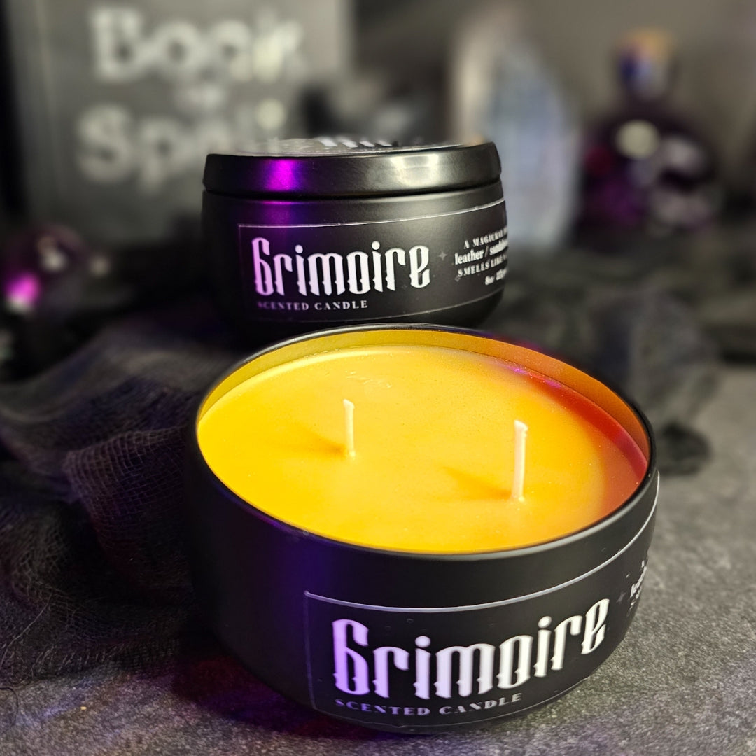 Our Grimoire Candle will cast a magickal aroma over your home while you practice your craft! The perfect addition to your witchy home! Light the wick and let your senses be enchanted.